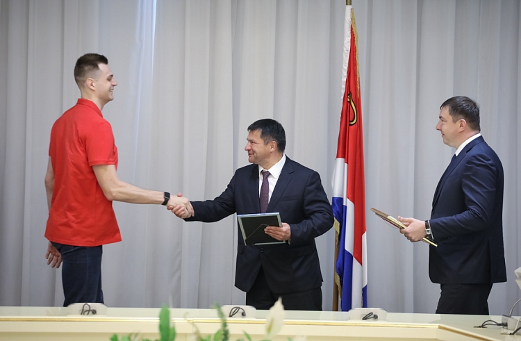 Андрей Тарасенко наградил команду «Спартак-Приморье» за победу в Суперлиге